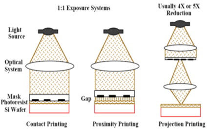 -Aligner: 1:1, 매우 빨라 생산량 우수. Uniformity가 나빠 수율이 낮음. Contact, Proximity 방식 사용