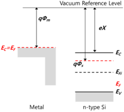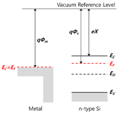 예시) Schottky Contact- Metal과 N type Semiconductor - Metal의 일함수가 더 큼