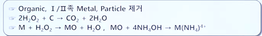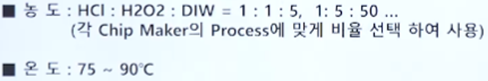 +각 단계마다 DI Water로 Rinse공정 진행 필요. 마지막에 IPA (세정 후 Wafer 건조, (CH3)2CHOH – 이소프로필 알코올 이용) 진행