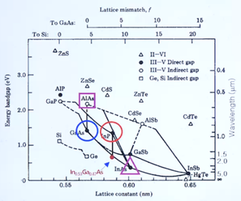 화합물의 굴절률과 Bandgap이 반비례 관계에 있어야 Laser Diode를 형성할 때 사용할 수 있음