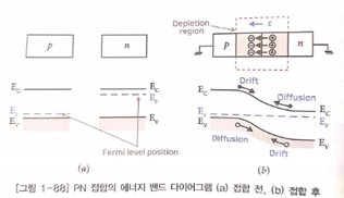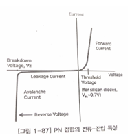 1)PN Junction P에 +, N에 -일 경우 Forward Bias(Majority Carrier Diff Main, 정류작용), 반대일 경우 Reverse Bias(Drift Main=leakage)