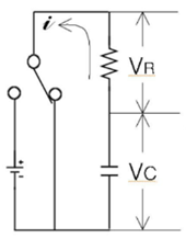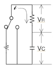 1. 스위치 연결 시 저항에 모든 전압. 이후 Capacitor에 충전 시작