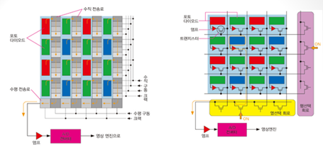 각 셀은 포토 다이오드와 CMOS 스위치로 구성(1화소).