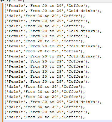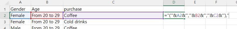 - 이후 insert문 사용을 위해 괄호, 작은따옴표, 콤마 추가 (값을 이동할 때 ctrl + 방향키를 사용하면 단어 단위로 이동함)