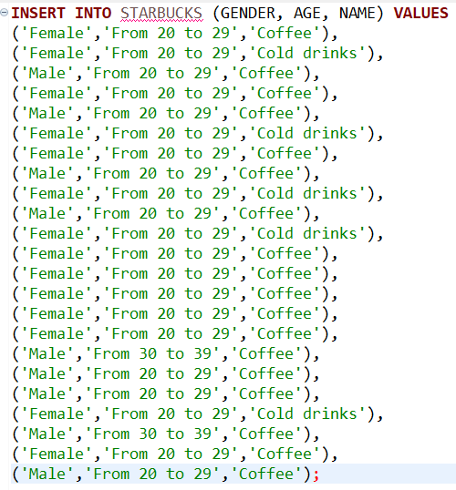 (STARBUCKS 테이블에 ID, GENDER, AGE, NAME가 있고, ID는 AUTO_INCREMENT일 때)