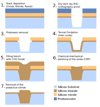 Etching 공정을 통해 Isolation 할 부분을 미리 식각 후 산화막을 증착.