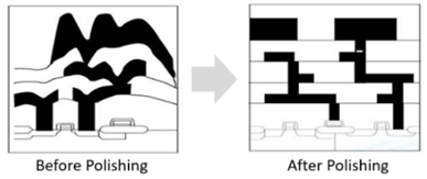 Planarization과 유사하지만 하부 막질이 보일때까지 CMP를 진행.