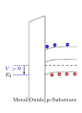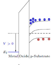 ->기판에서 Hole을 밀어내 공핍 영역 발생, Channel 없음! Interface에 Carrier 없음!